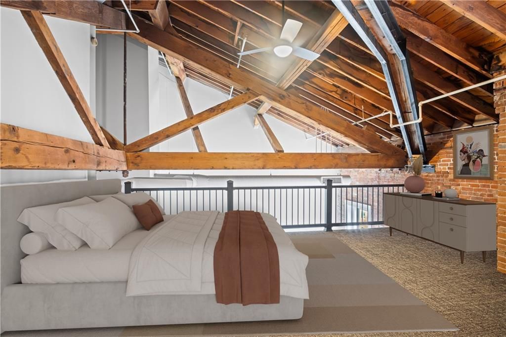 Two story loft in the Old Board of Trade building! This historic building sits on the most picturesque street in the River Market. This top floor condo features 35 foot wood timber ceilings, updated kitchen and bath, exposed brick and concrete floors throughout. Situation on the corner, this loft has plenty of windows that allow in ample natural light. Walk to the City Market, hop on the streetcar right outside your door, or take advantage of the easy highway access nearby. One parking permit for the H Lot is included in the HOA monthly payment and additional designated surface or carport parking is also available for purchase. Seller will provide a one year home warranty for the buyer. Put your mind at ease when purchasing in this Condo building with low HOAs!