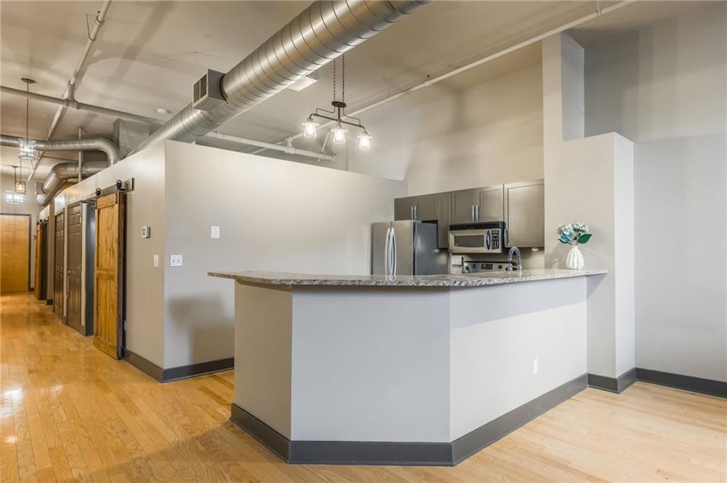 MOTIVATED SELLER ~ CONVENIENCE IS THE NAME OF THE GAME with LOFT #114 This move-in ready loft is in a prime spot- ground floor, NO ELEVATOR NEEDED, NO STAIRS to climb!! (Owners of upper level floors have mentioned that owners above the first floor are limited greatly with the size of their furniture due to the elevator size.) You literally walk past all of the amenities and boom ~ your front door is right there. It's the kind of easy living that is hard to come by, especially in the River Market. Perfect for anyone who wants quick access to the gym, mailroom, conference room, social room, trash & recycle, or just wants to pop out for coffee, grab fresh fruits & veggies (City Market is directly across the street), hop on the street car (pick up station 2.5 blocks away). It's all about location, & this one nails it!!! Assigned parking spot is FRONT ROW next to the ramp! Don't compromise on space...EXTRA LARGE UNIT with 1723 sq ft!! Building has 2 year old AC and furnace, the roof is one year old! NO SPECIAL ASSESSMENTS like some of the other area buildings! This unit had kitchen remodel approximately 4 years ago...newer appliances which are all staying, granite countertops, and unit comes with full size washer and dryer. HOA pays for building maintenance, snow removal, common area cleaning, gym, social room, reading nook, trash/recycle, building management, assigned parking spot, and storage locker. Free bike racks in basement & extra storage available for rent. All utilities other than electricity paid for!!! Google Fiber available for you to choose as your wifi provider. Close to CPKC Stadium, downtown, & across the street from all of the restaurants and shopping at the City Market! Perfect for a downtown worker who wants to take the streetcar to work, 1st time empty nesters who don't want to give up so much square footage with a loft, or first time home buyer. Avoid the hassles of other KC lofts with all of the new!