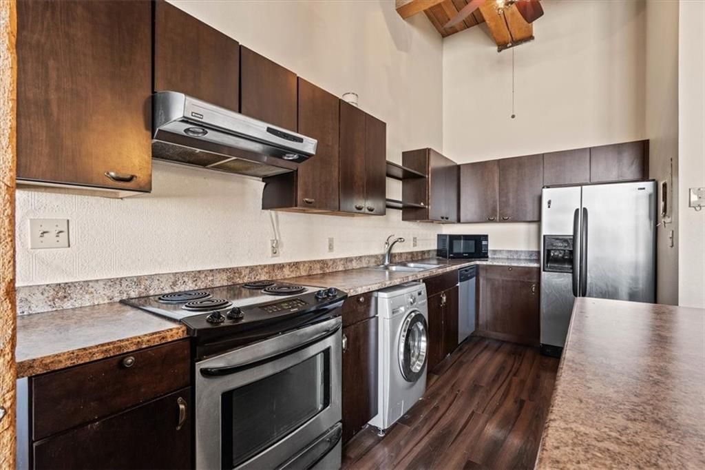 FOR SALE OR LEASE Welcome to that loft - the one with soul, style, and a layout that makes every square foot count. Set in the historic Garment District, this one-bedroom impresses with exposed brick, a striking tongue-and-groove ceiling, and a rooftop terrace that reminds you why downtown is the place to be. And the location is fantastic! Grab morning coffee, take a midday trip to the City Market, or enjoy late-night cocktails - everything is just steps away. Comfort and efficiency define the living area, which flows into a well-appointed kitchen with modern conveniences. Expansive windows offer plenty of natural light and wide-open views, while the bedroom provides privacy without sacrificing the airy, industrial vibe. A sleek bathroom ties it all together with clean, contemporary finishes. Soho Lofts delivers great amenities, including a rooftop patio, full gym, sauna, yoga room, club room with a pool table, extra storage, and secure garage parking available to lease. As a primary residence, it's a chic retreat in a walkable neighborhood surrounded by dining, shopping, and entertainment. As an investment, it boasts strong rental potential with easy streetcar access and proximity to the Power & Light District and the River Market. Either way, it's an opportunity you don't want to miss.