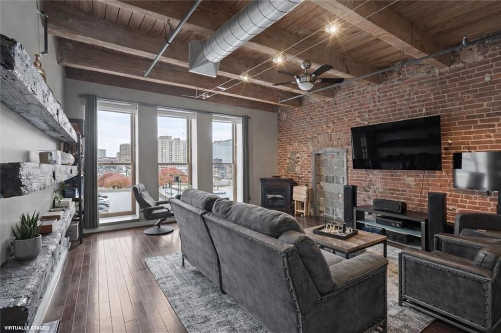 Modern amenities, 3rd-floor views, plus the entire downtown scene as your playground! This adorable condo packs big style, authentic urban accents, and a whole lot of charisma into a historic 1800s building conveniently located between the River Market and the P&L District. We are talking light, height, and exposed elements: brick, timber beams, piping, and a polished tongue-and-groove ceiling, all of which play perfectly against the sharp upgrades and the Brazilian Walnut floors that flow throughout. While the vibe leans industrial, it still feels warm and sophisticated. The elevated living area is comfortable with city views and a cozy gas fireplace. The bedroom is inviting, with ample closet space, and the bathroom is sleek and relaxing, featuring a jacuzzi tub and a Rain Shower Head. The kitchen impresses with stainless steel appliances, granite countertops, a stylish backsplash, custom cabinetry, and a functional breakfast bar island with a cooktop. A nearby alcove creates the perfect spot for a home office. Furthermore, you have the benefit of an in-unit washer and dryer, a gated surface parking spot, and a storage locker. Residents can take advantage of an array of amenities, including a sauna, hot tub, pool, gym, tanning bed, media room, kitchen, club room, theater, bike rack, and meeting center. The grand staircase and preserved domed ceiling pay homage to the building's historic roots, adding a touch of timeless elegance. Great layout, fantastic perks, and day or night, you can eat, drink, shop, or play thanks to the nearby streetcar and all the surrounding venues. Don't miss your chance to own a piece of history and live that downtown lifestyle you've dreamt about.