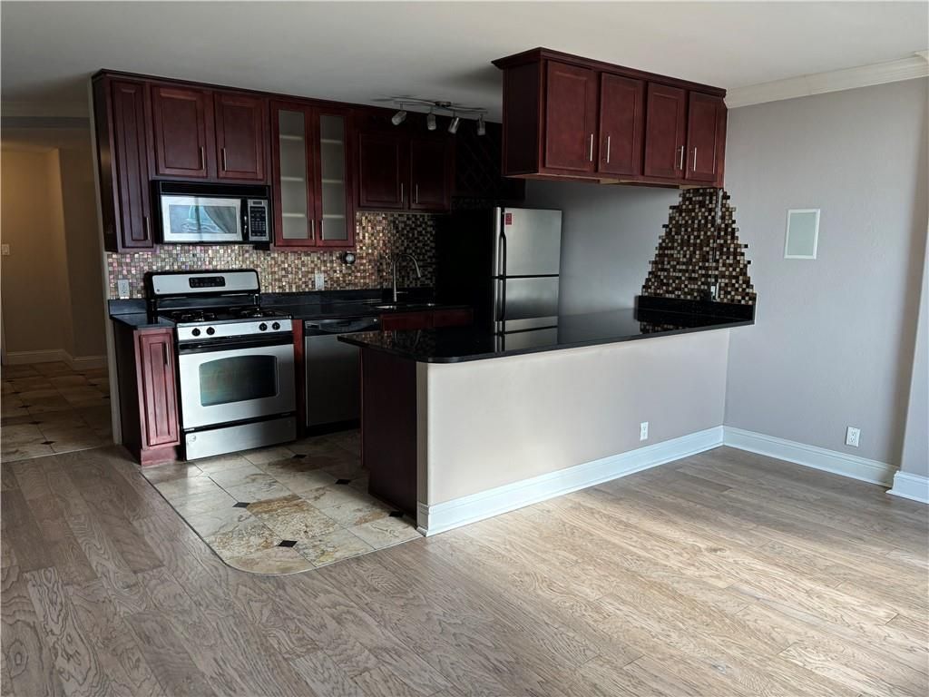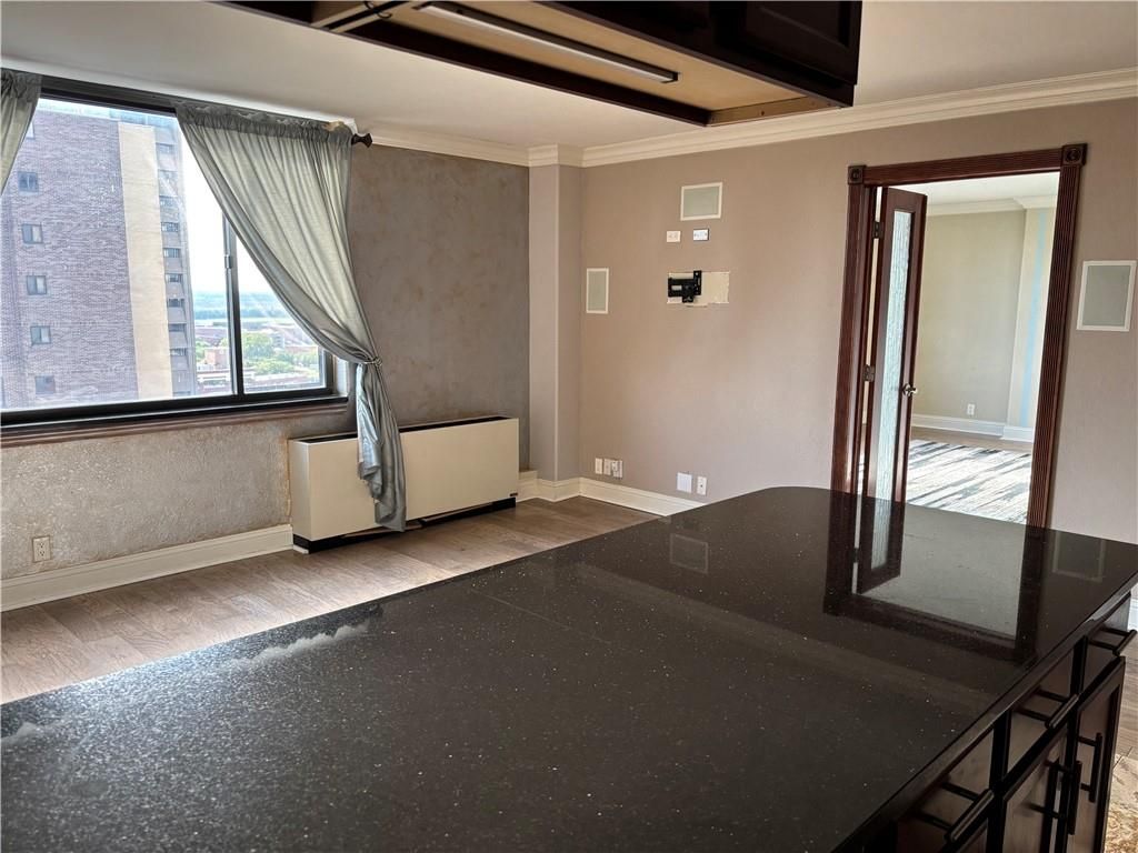 Welcome to The Manhattan. You will love this floorplan. This unit features, an amazing view. Granite counters with beautiful backsplash in the kitchen. Italian travertine tile in the wet areas with diamond inlay. French Doors lead you into your Primary Bedroom with an attached bath, check of the view. Second bedroom has 2 large closets. Upgraded surround sound. Washer/Dryer in unit. 24-hour Concierge & Security: Penthouse pool & hot tub with kitchenette & longe: Commerical Grade Theater Rood: game room with full kitchen, pool table, & foos ball table: 4,000 SF of fitness area with aerobics classes offered: limousine service: on-site salon and spa.